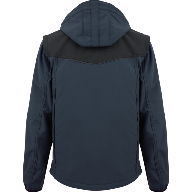Con maniche e cappuccio staccabili, trasformabile in pochi minuti da giacca in Softshell a comodo gilet.