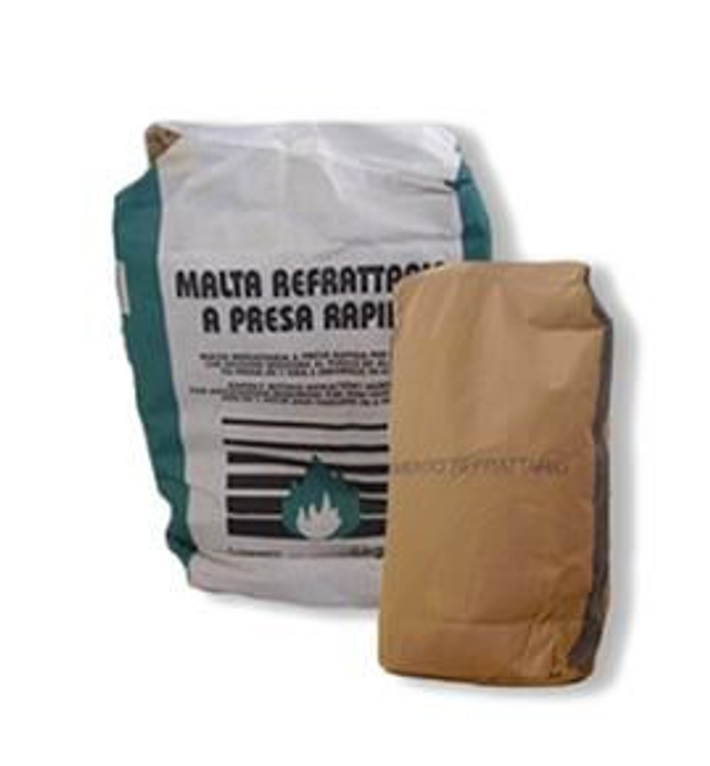 Malta refrattaria in sacchi da 10 kg. Elevata resistenza termica, meccanica e all’acqua. Ideale per la posa in opera di materiale refrattario.