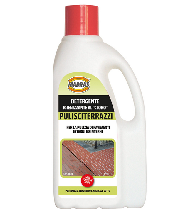 PULISCITERRAZZI non contiene acidi ed è ideale per la pulizia di superfici sia delicate in ardesia, travertino, marmo e suoi derivati, che in gres porcellanato, cotto, pietra, klinker, ecc.